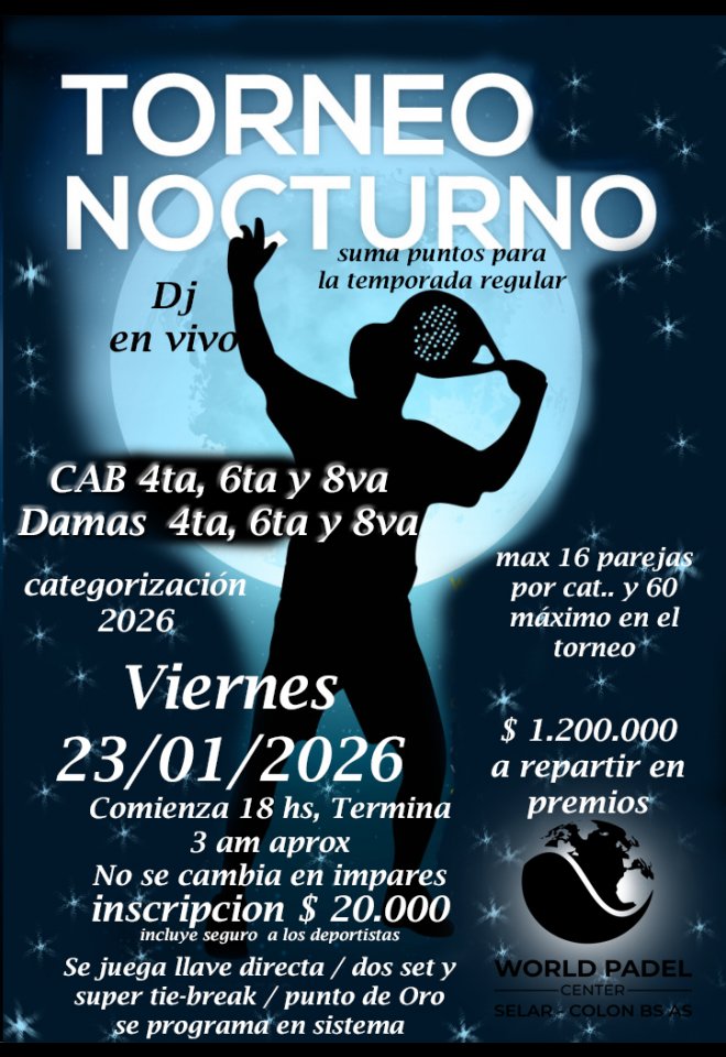 »» Evento: Pares - Nocturno 23 de enero 2026 »» Localidad: Colón »» Fechas: 23/01/2026 al 24/01/2026