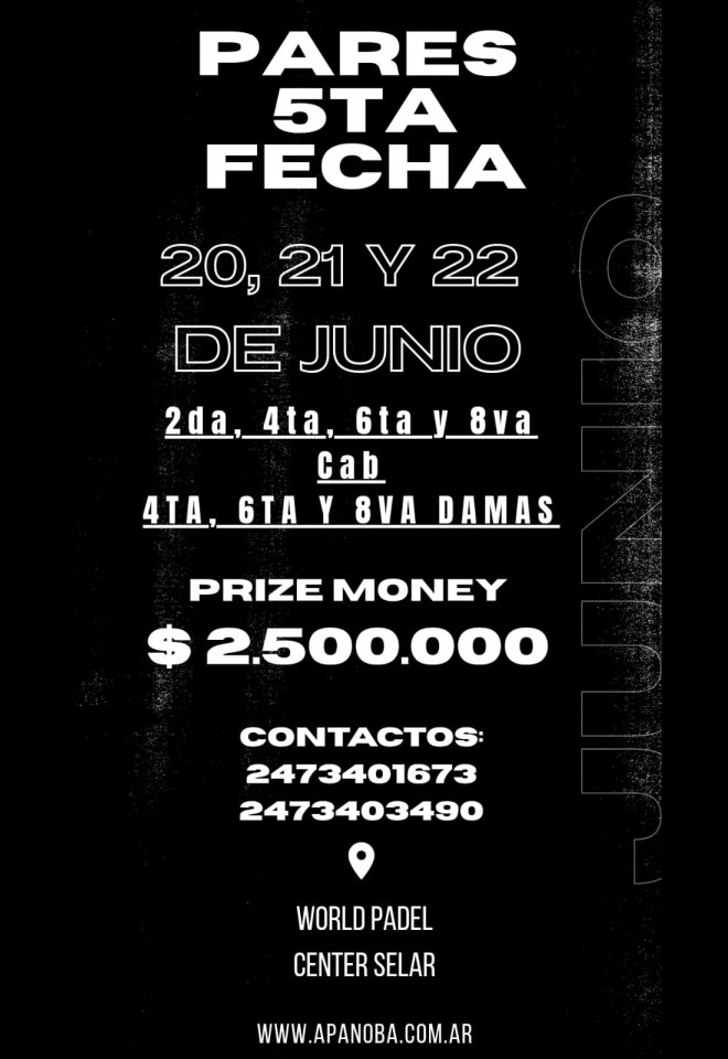 »» Evento: Pares 5ta fecha - Junio 2025 »» Localidad: Colón »» Fechas: 20/06/2025 al 22/06/2025