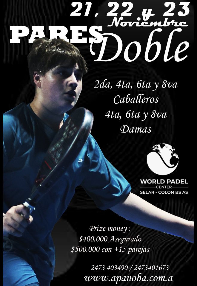 »» Evento: Pares Doble Puntaje - Noviembre »» Localidad: Colón »» Fechas: 21/11/2025 al 23/11/2025