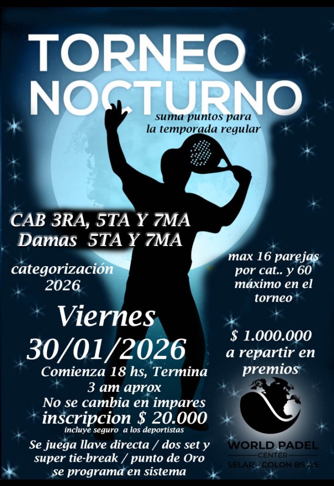 »» Evento: Nocturno 30 de enero - Impares »» Localidad: Colón »» Fechas: 30/01/2026 al 31/01/2026