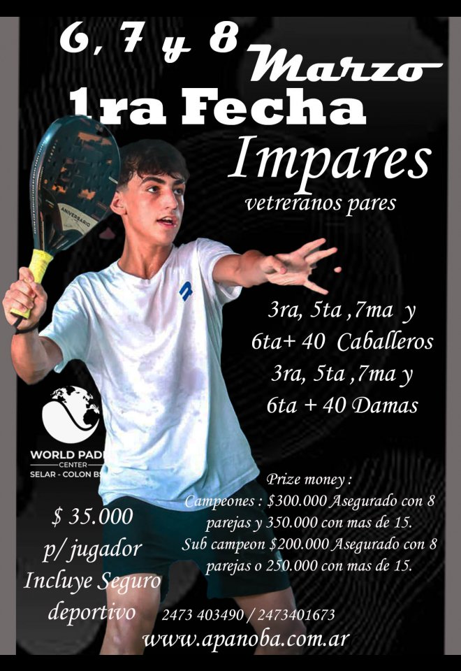»» Evento: primera fecha 2026 - Impares Marzo »» Localidad: Colón »» Fechas: 06/03/2026 al 08/03/2026