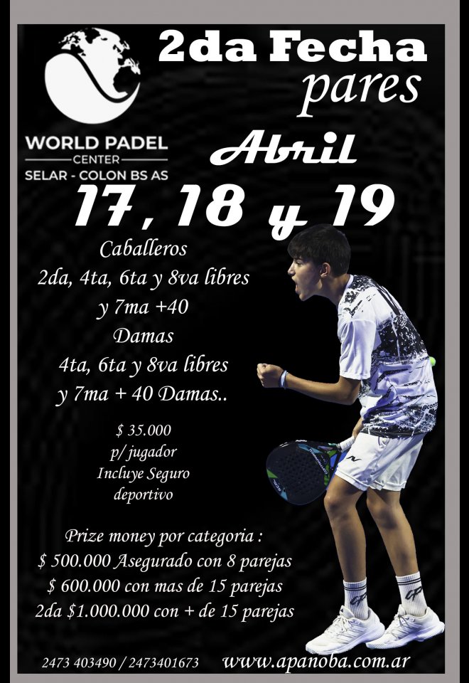 »» Evento: Pares Fecha 2 temporada 2026 »» Localidad: Colón »» Fechas: 17/04/2026 al 19/04/2026